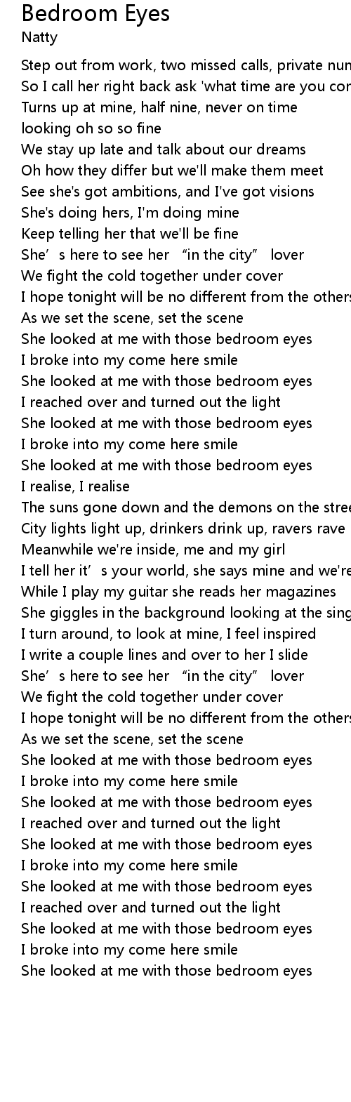 Natty Usa Bedroom Eyes Lyrics Genius Lyrics from images.genius.com Check spelling or type a new query. We did not find results for: Maybe you would like to learn more about one of these?